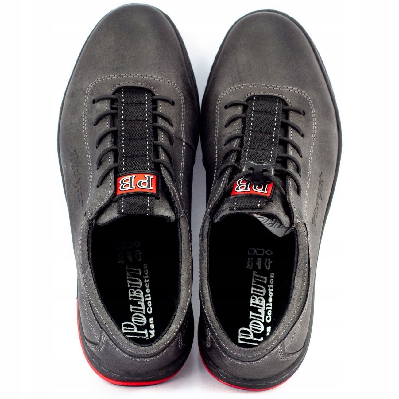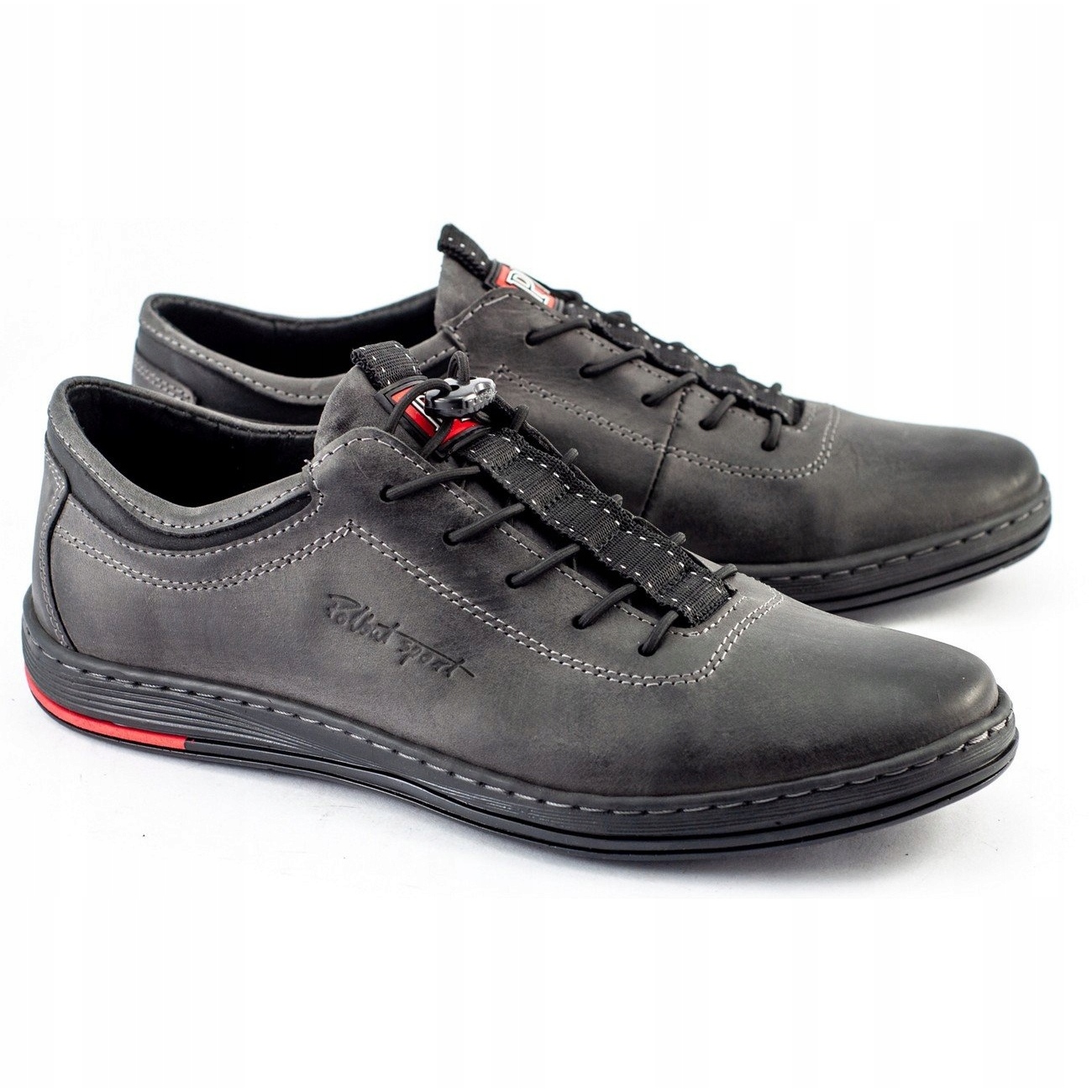 Polbut présente les chaussures en cuir K23 pour hommes dans une élégante teinte grise, qui allient confort et style décontracté moderne. Ces chaussures à enfiler se caractérisent par un système de laçage innovant utilisant une bande élastique, qui facilite leur enfilage et s'adapte parfaitement à la forme du pied et à la hauteur du cou-de-pied, garantissant un confort maximal au quotidien.
