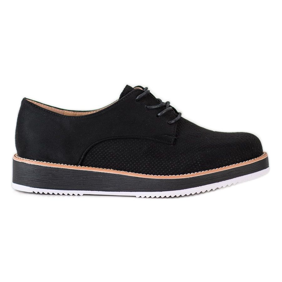Les chaussures ont une plateforme solide de 3 centimètres avec une semelle crantée, qui assure une bonne adhérence et une bonne stabilité sur diverses surfaces. La partie avant ajourée des chaussures, ornée de délicats trous, leur confère un caractère unique et une originalité. La fermeture à lacets permet un ajustement précis au pied, assurant un confort de port tout au long de la journée.