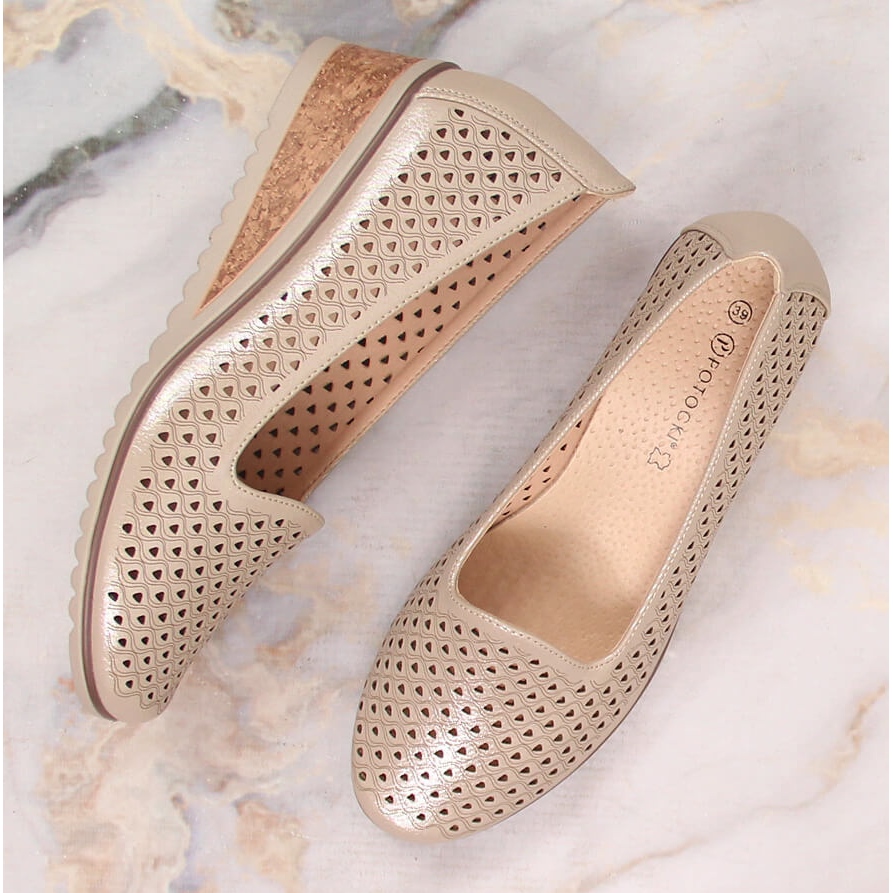 Potocki Chaussures compensées ajourées beige scintillant pour femme Potocki SZ12018