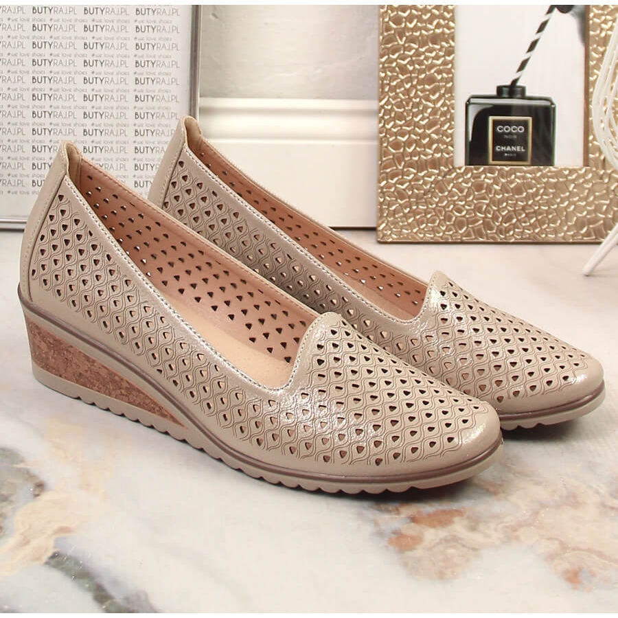 Les chaussures élégantes et confortables sont un élément indispensable de la garde-robe de chaque femme. Les chaussures compensées beiges brillantes et ajourées pour femmes de Potocki sont la solution parfaite pour celles qui recherchent un compromis entre style et confort de port.