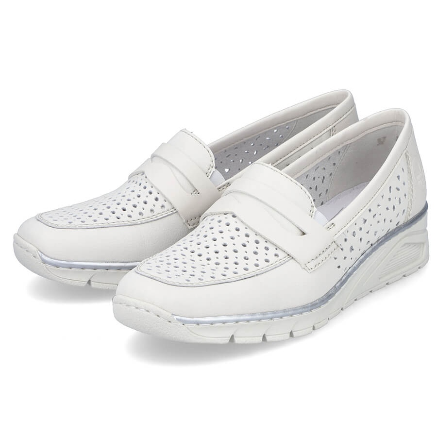 Rieker Chaussures compensées ajourées en cuir pour femmes Rieker N3356-80 blanche