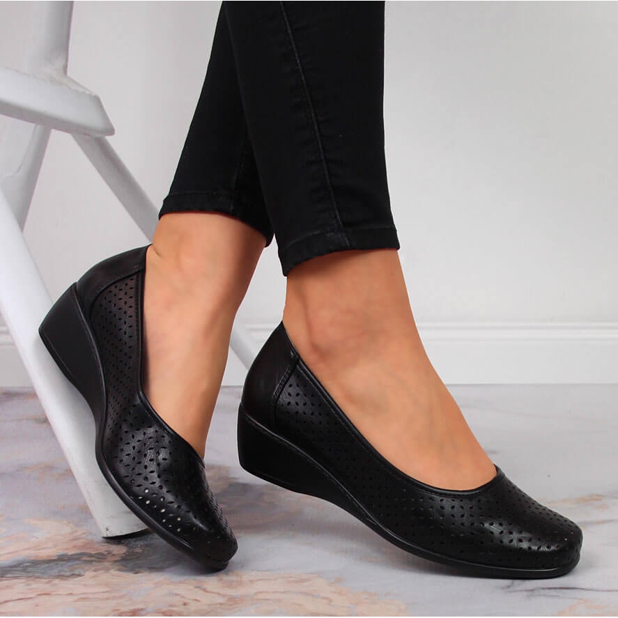 Les chaussures compensées noires ajourées pour femme de la marque Jezzi sont l'alliance parfaite entre style et confort. Fabriqués en cuir écologique de haute qualité, ces escarpins attireront certainement l'attention de tous les amateurs de mode. Leur couleur noire intemporelle les rend universels et s'intègre parfaitement dans une variété de styles, du plus décontracté au plus élégant.