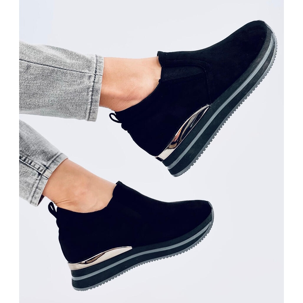 Ce modèle est la quintessence de la modernité et de la praticité parmi les chaussures pour femmes. Les chaussures élégantes à enfiler avec un coin caché sont le choix parfait pour toutes les femmes qui apprécient la combinaison de l'élégance sportive et du confort au quotidien. La finition en daim noir ajoute de la classe et de la polyvalence, ce qui les rend adaptés à pratiquement tous les styles – des jeans décontractés aux pantalons ou jupes plus élégants.
