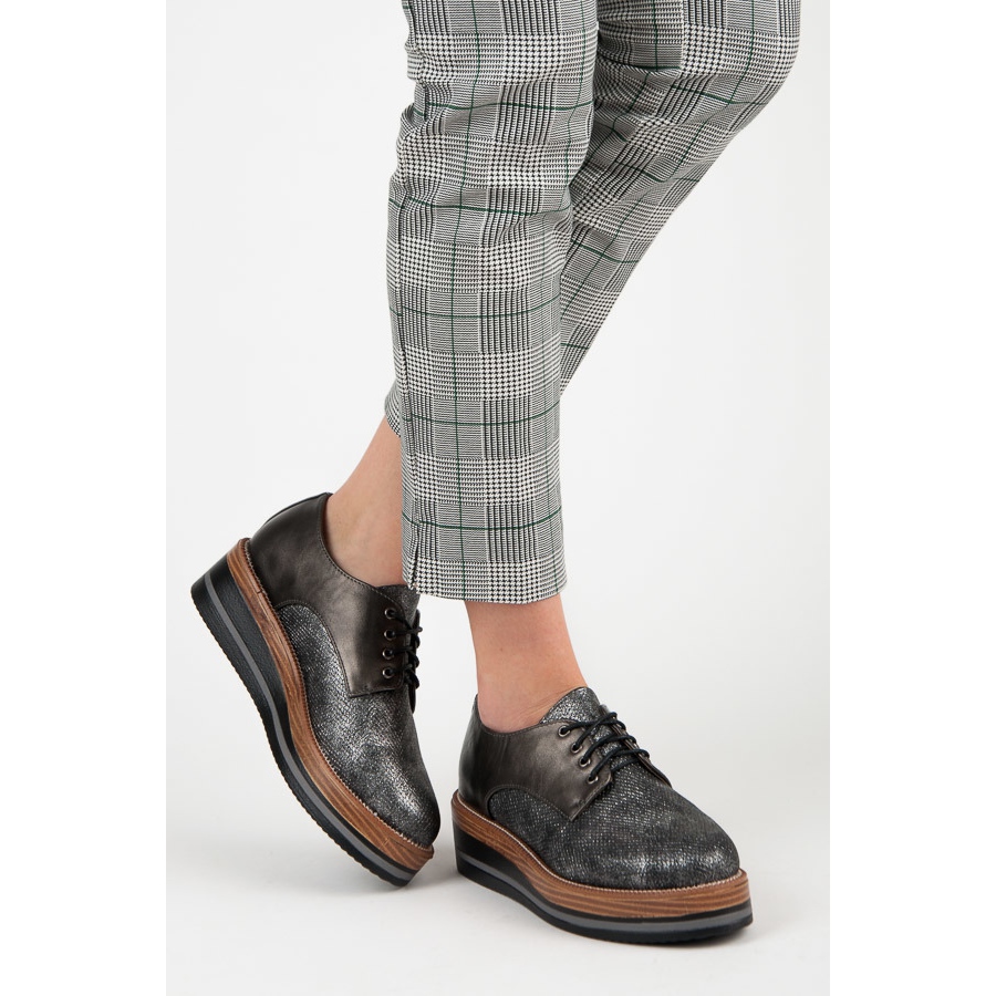 Découvrez un style extraordinaire avec les chaussures compensées de la marque Kylie ! Ces chaussures richelieu grises sont un choix parfait pour les femmes qui apprécient à la fois l'élégance et le confort. Leur coupe classique, mais en même temps légèrement masculine, en fait un complément parfait aux styles décontractés, leur conférant élégance et sophistication.