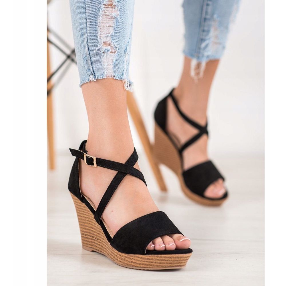 Découvrez l'élégance et le confort dans l'un des modèles Small Swan - des chaussures compensées en daim noir. Ces sandales classiques sont le choix parfait pour toutes les femmes qui souhaitent se sentir élégantes et à l'aise les jours et soirées d'été.
