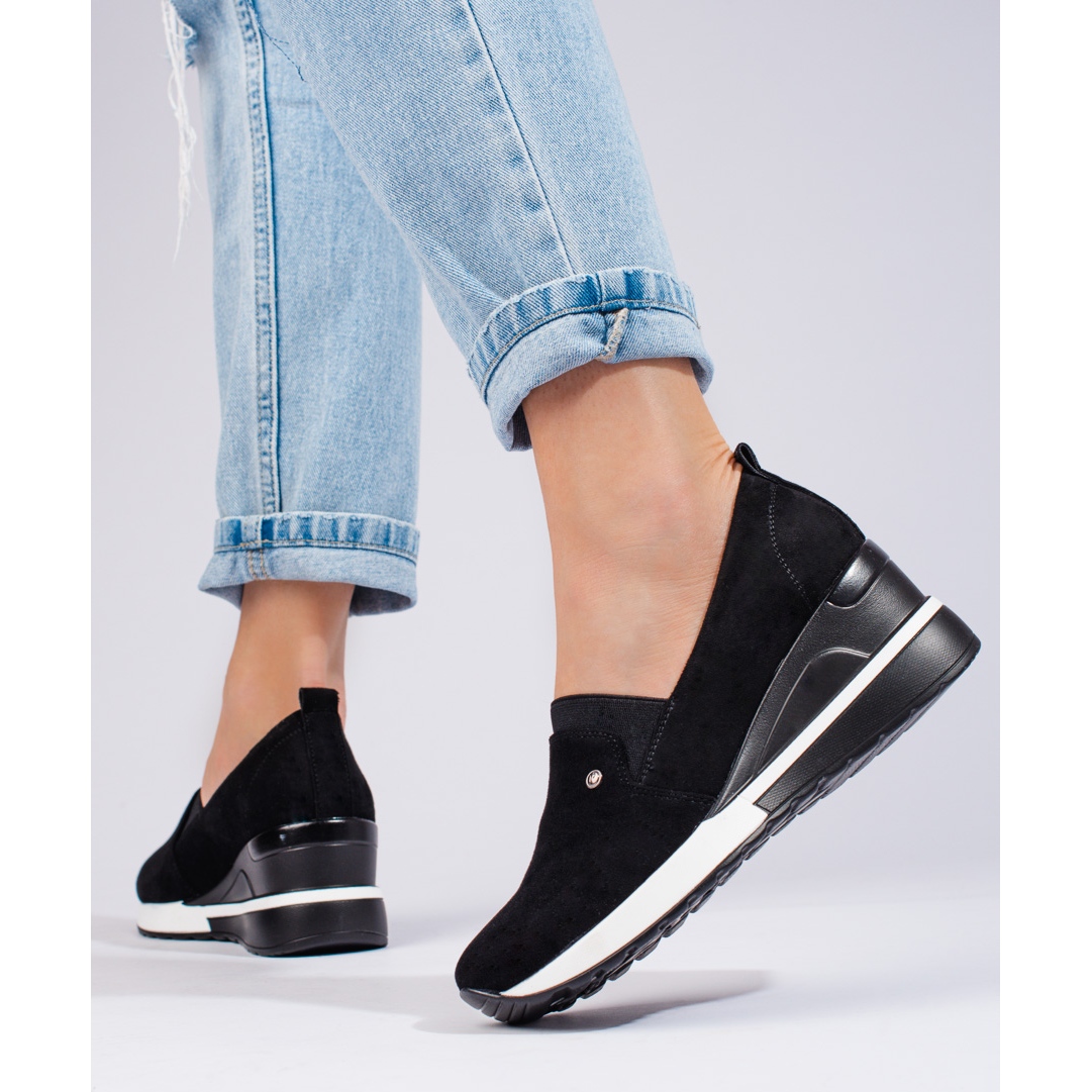 Découvrez les chaussures compensées pour femmes de SHELOVET - le choix parfait pour les femmes qui apprécient le confort et l'élégance au quotidien. Ces chaussures en daim noir allient design tendance et fonctionnalité. Fabriqués en daim écologique de haute qualité, ils offrent non seulement une apparence attrayante, mais également un confort de port.