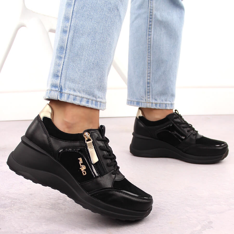 Nous vous présentons les chaussures compensées en cuir noir pour femmes Filippo DP6434 - une proposition idéale pour les femmes qui apprécient le confort et un look à la mode. Ces chaussures uniques, fabriquées en cuir naturel de haute qualité, sont un succès absolu de la saison !