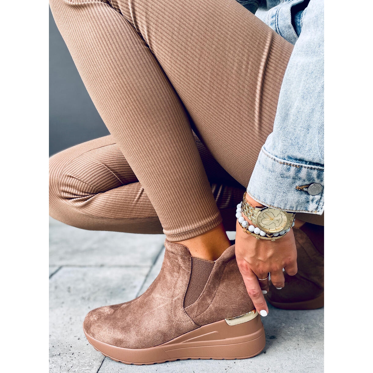 Découvrez le confort et le style avec les chaussures compensées Florens dans une élégante nuance de beige kaki. Ces chaussures en daim pour femmes uniques, avec une hauteur de coin de 6,5 cm, allient design moderne et fonctionnalité au quotidien. La conception à enfiler permet d'enfiler et de retirer les chaussures extrêmement facilement, ce qui en fait la solution parfaite pour toutes les occasions.