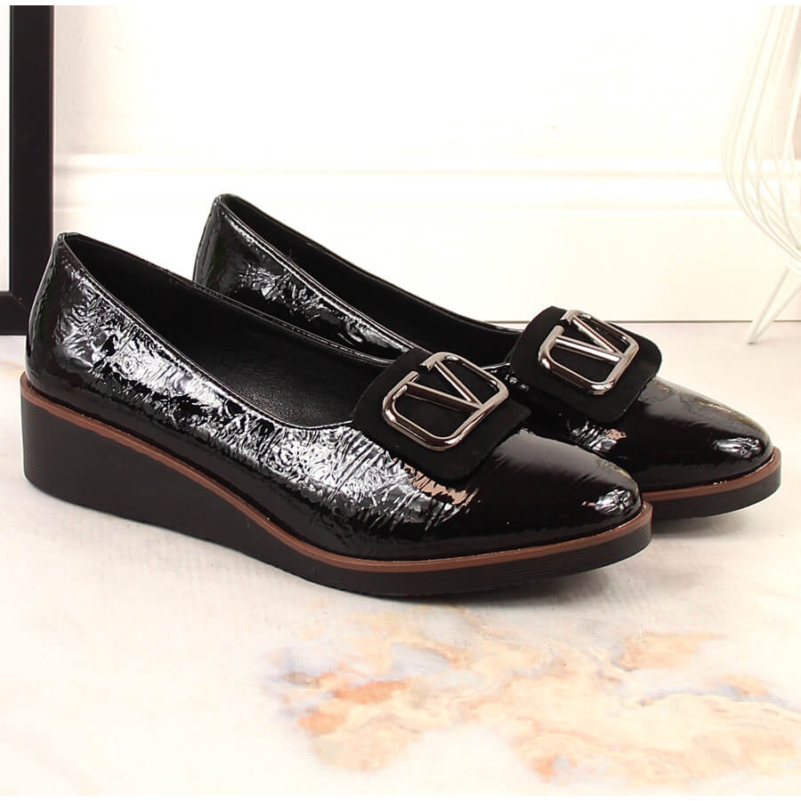 Jezzi Chaussures compensées laquées noires femme Jezzi RMR2265-3 le noir
