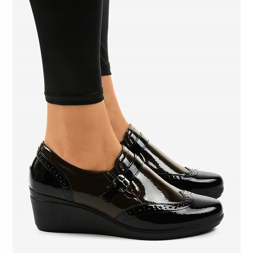 Inna marka Chaussures compensées noires 7-9021 brun le noir