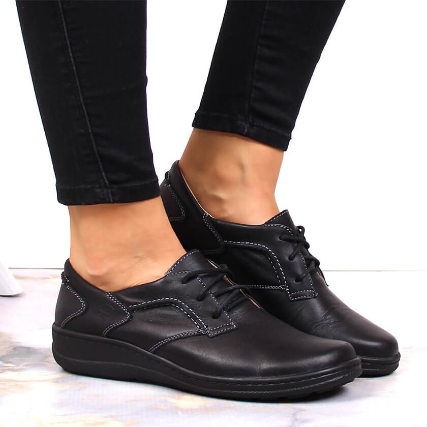 Détails: Chaussures confortables en cuir pour femmes noires Helios 715 le noir