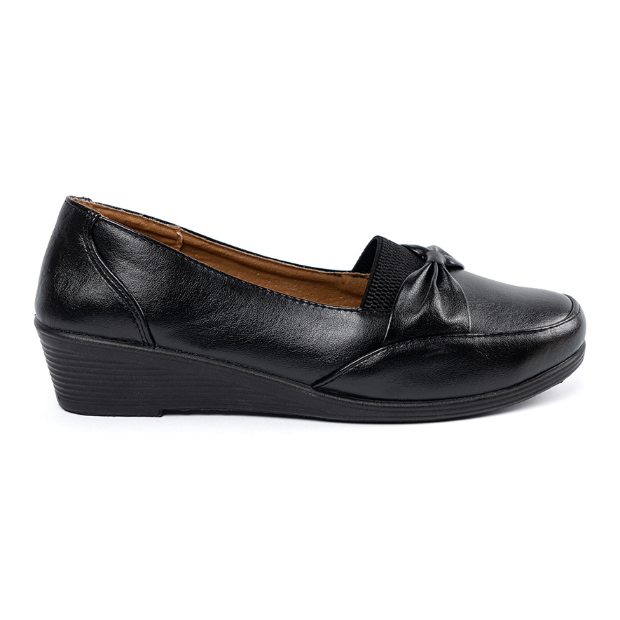 Détails: Chaussures coulissantes noires avec un arc