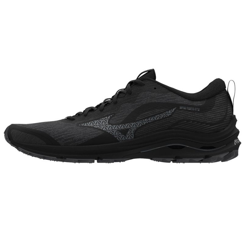 Mizuno Wave Rider GTX M J1GC227901 Chaussures de course - Chaussures d'entraînement masculines, basses, conçues pour courir sur des surfaces dures (asphalte). Les couleurs noires classiques avec des détails de gris font que le modèle fonctionne bien à la fois pendant l'entraînement et tous les jours.