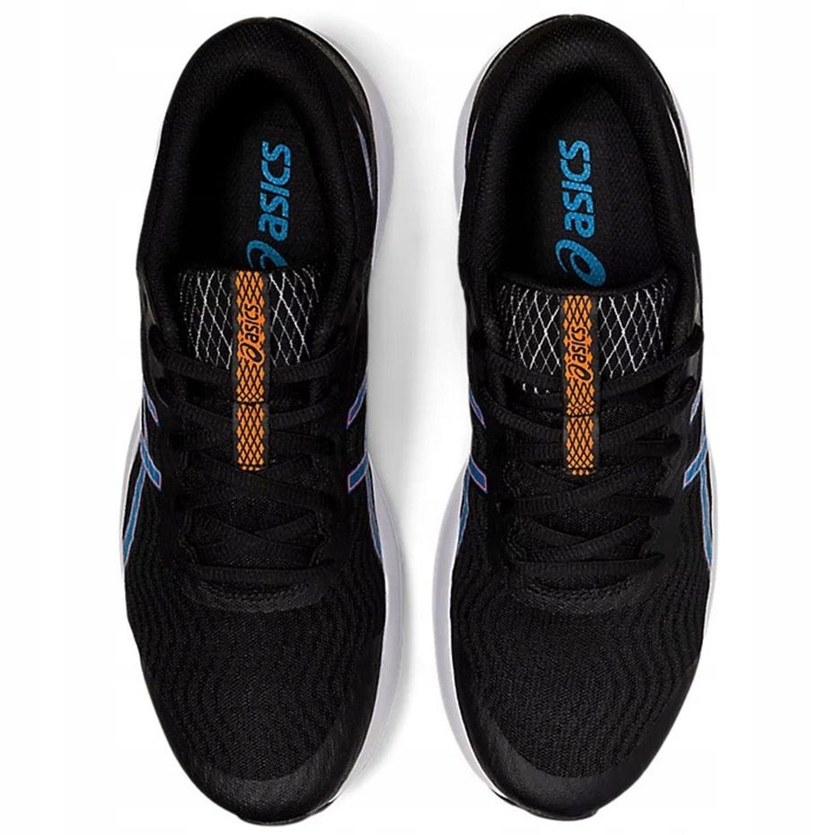 Détails: Chaussures de course pour hommes Asics Patriot 12 noir et bleu 1011A823 004 le noir