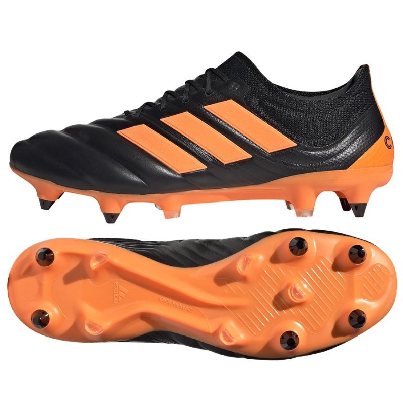 Les chaussures de football adidas Copa 20.1 Sg M EH0890 sont un excellent choix pour les hommes qui recherchent qualité et style sur le terrain. Fabriquées en cuir naturel de haute qualité, ces chaussures multicolores dans les tons noir et orange allient design moderne et solutions classiques.