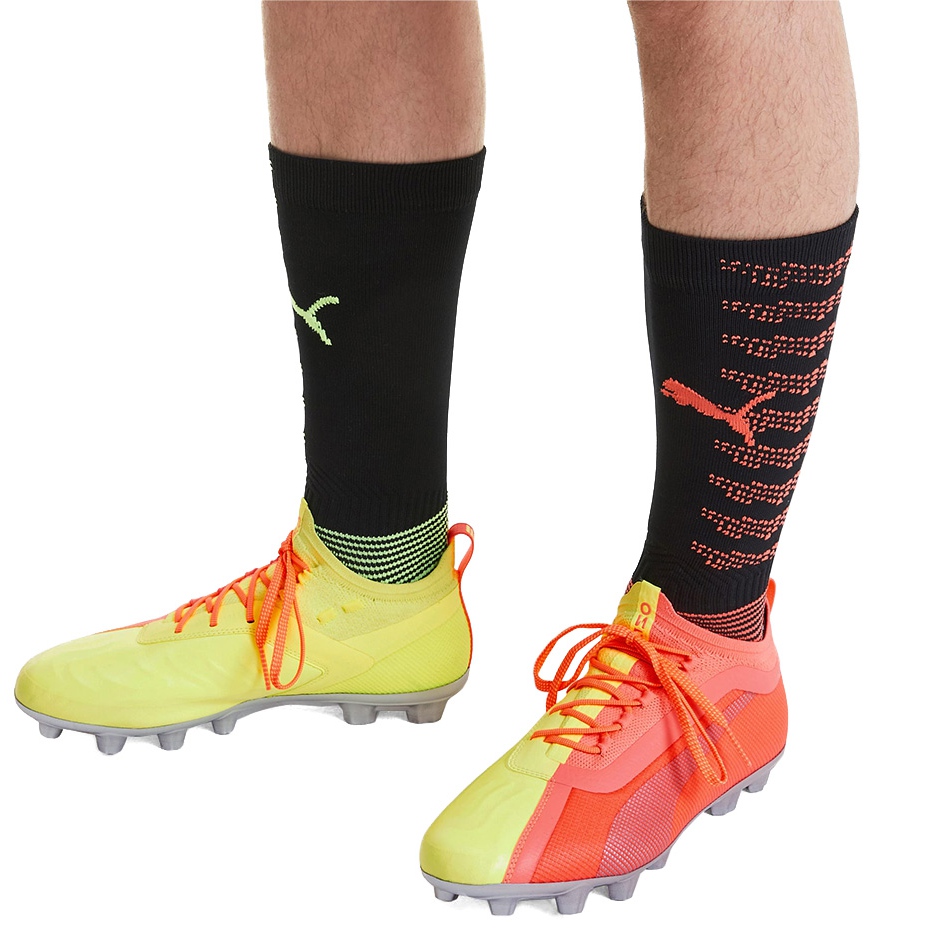 Entrez sur le terrain en toute confiance avec les chaussures de football Puma One pour hommes et démontrez fièrement un style de jeu qui écrase la défense de votre adversaire. Les crampons professionnels Puma sont conçus pour les compétitions de ligue sur gazon naturel ou artificiel. Modèle jaune-corail de la collection Rise Pack. Construction supérieure ultra-fine. Laçage légèrement asymétrique. Système SrinWeb sous la forme d'un revêtement synthétique texturé, stabilisant les pieds. Technologie EvoKnit qui épouse le pied jusqu'à la cheville. Système FuseFit comme options de laçage supplémentaires. Semelle extérieure réactive et légère avec ventilation rapide et configuration de crampons spéciale. Le visage de la ligne est Sergio Aguero et Romelu Lukaku.