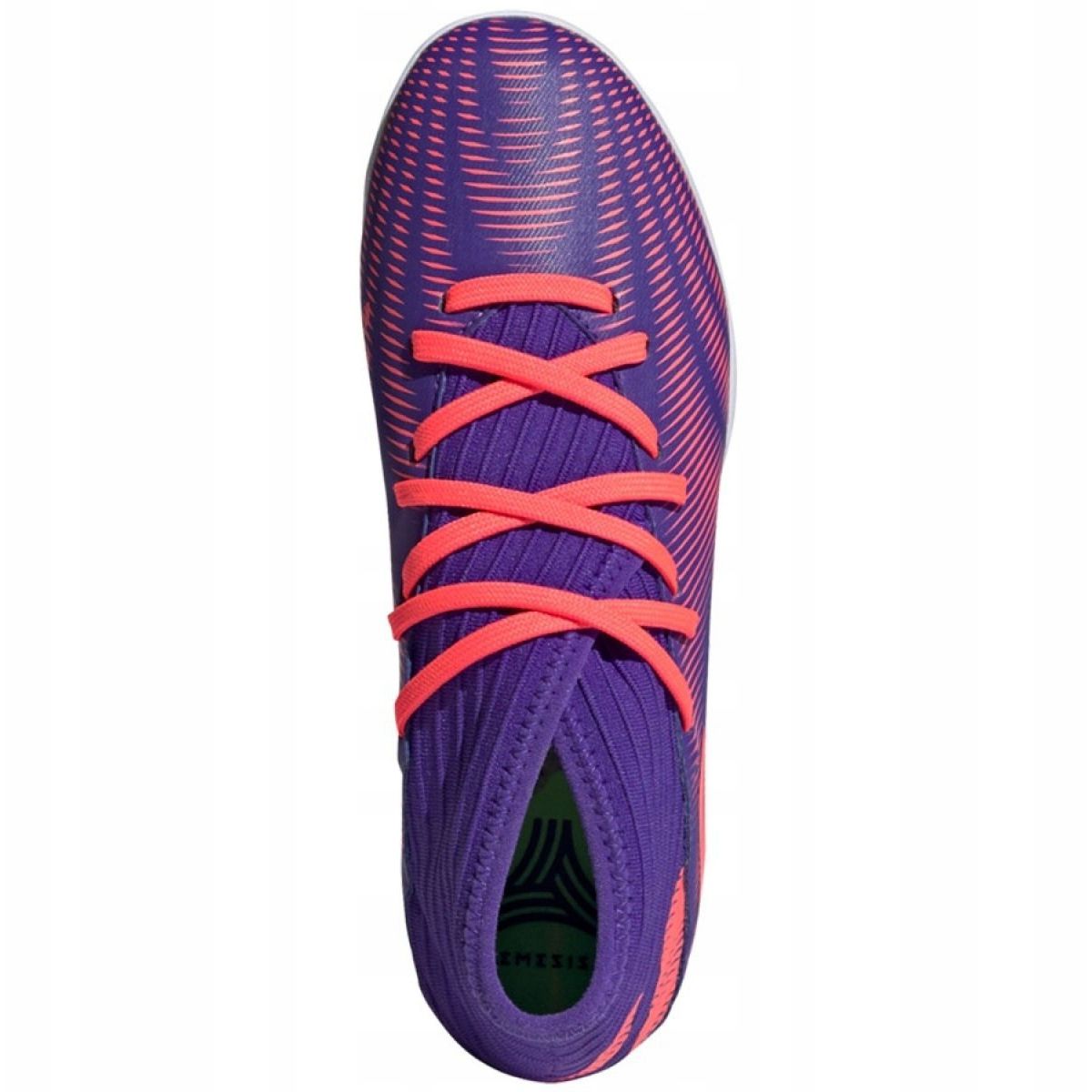 Les chaussures Nemeziz .3 In Jr sont équipées d'une semelle non marquante, ce qui en fait un excellent choix pour les compétitions en salle. Le type de fermeture à lacets permet d'ajuster les chaussures au pied, ce qui augmente encore le confort et la stabilité lors des mouvements dynamiques. Le modèle chaussette est une solution moderne qui offre un meilleur ajustement et un meilleur maintien de la cheville.