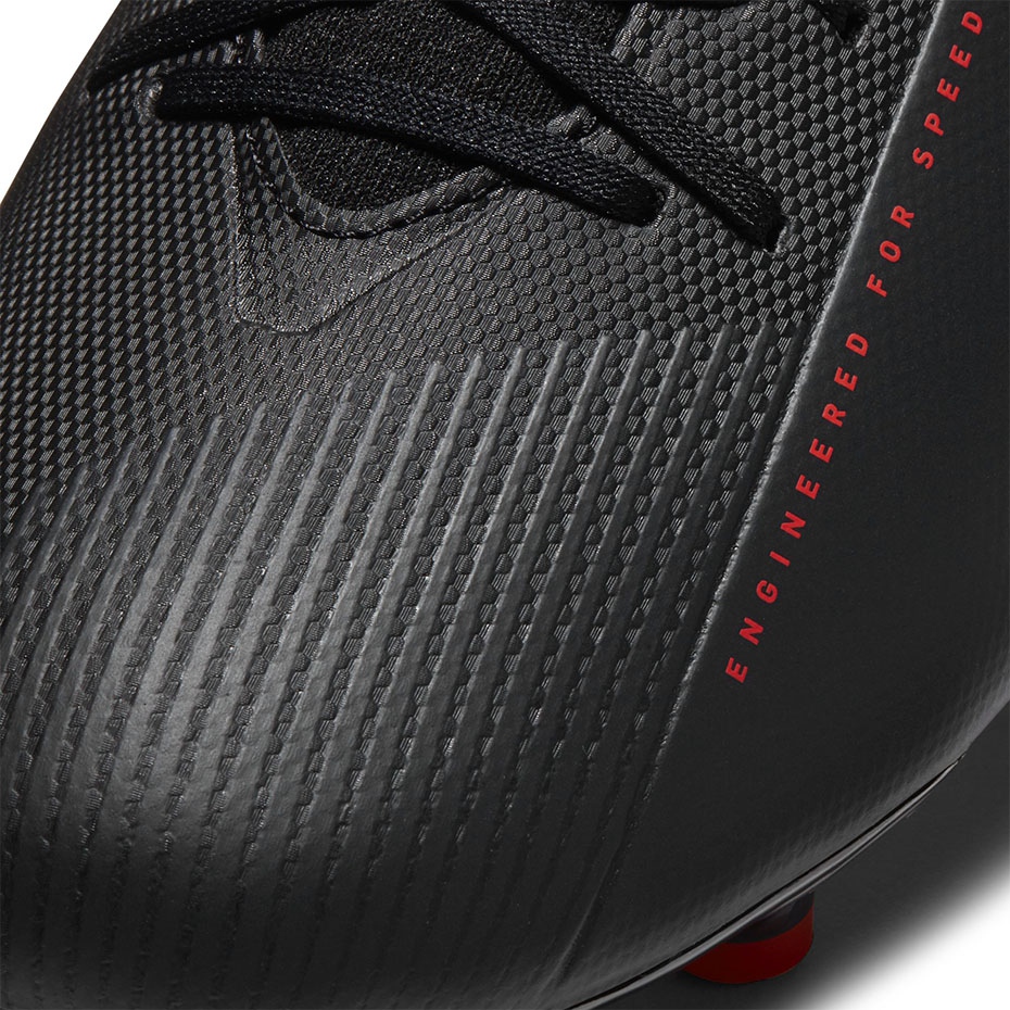 Parié sur la vitesse et le contrôle avec la série mercurielle emblématique. La Superfly 7 Academy est un Lanka de football léger et ajusté conçu pour un jeu dynamique sur les surfaces naturelles et artificielles (FG / mg). Le style noir et minimaliste de la collection Black X Chile Red Pack rend les chaussures agressives et professionnelles - idéales pour les joueurs semi-amateurs qui attendent du confort et de la précision.