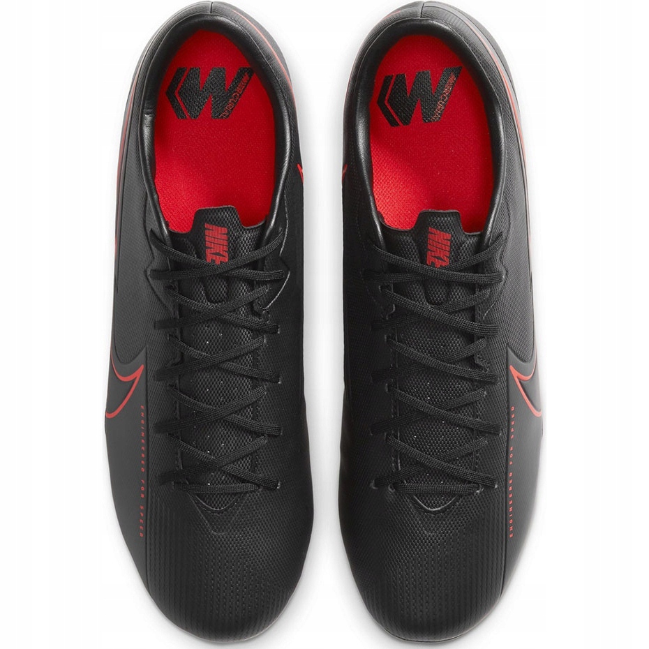 MODERNE NIKE Mercurial Vapor 13 Academy Bracks de la collection Black X Chile Red Pack est une proposition pour les joueurs à la recherche de la vitesse, de la précision et du confort sur une surface herbeuse naturelle et artificielle. Une tile supérieure et une tuile innovante légère et texturée avec la technologie Nike Aerotrak assure une accélération et un bon contrôle du ballon dans toutes les directions.