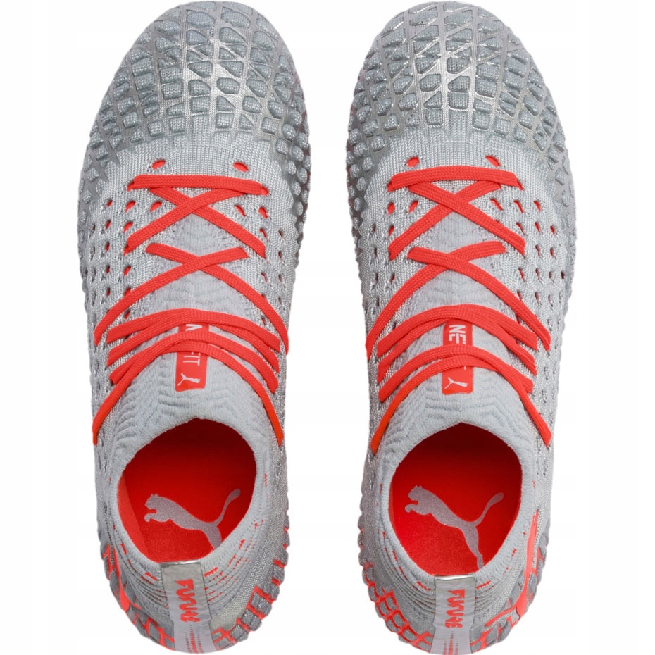 Détails: Chaussures de football Puma Future 4.1 Netfit Fg Ag Jr argent-rouge 105692 01 gris