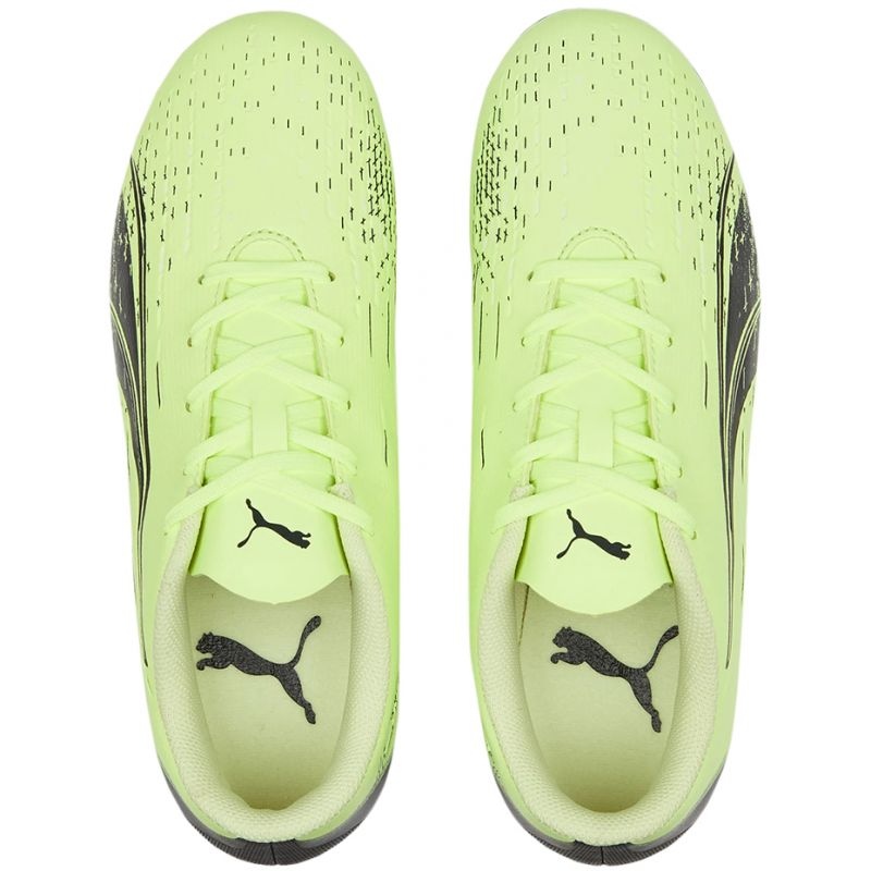 Les chaussures Puma Ultra Play FG/AG Jr se caractérisent également par un design unique. La couleur verte dominante rappelle l'intensité et l'énergie qu'un jeune joueur peut apporter au jeu en portant de telles chaussures professionnelles.