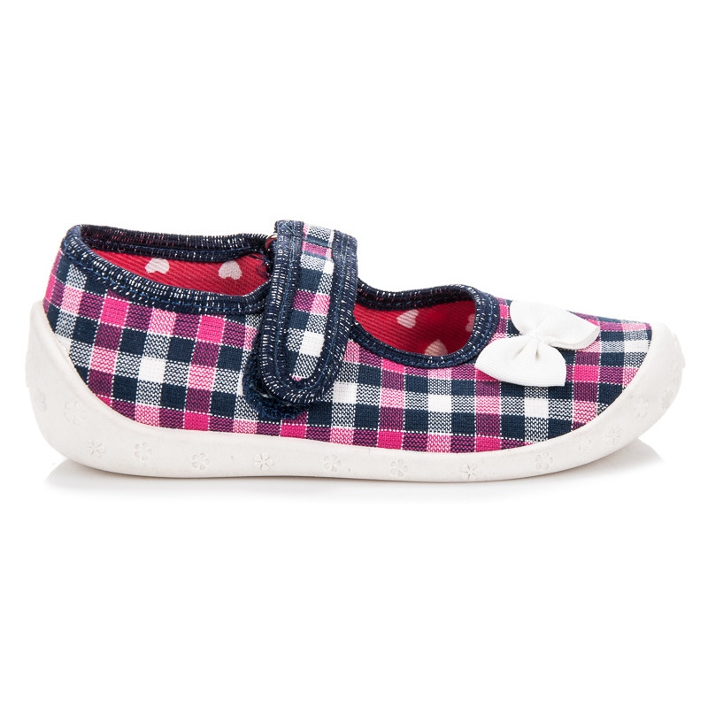 Détails: Reweks Chaussures de maison à carreaux bleu marin rose