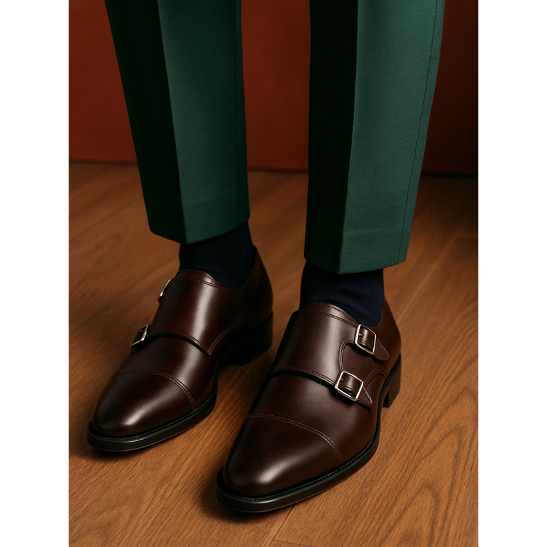Les moines, c'est-à-dire les chaussures avec une boucle au lieu de lacets, sont une alternative tendance aux chaussures à lacets classiques. Le moine simple (une boucle) est plus sobre, le double moine (deux boucles) plus expressif. Ils s'accordent parfaitement avec des costumes modernes et ajustés dans des couleurs inhabituelles : bleu marine, bordeaux, vert bouteille. Les moines marron foncé ou noirs seront parfaits pour un mariage urbain, industriel ou glamour. C'est un choix pour les hommes sûrs d'eux qui souhaitent se démarquer avec style tout en conservant l'élégance.