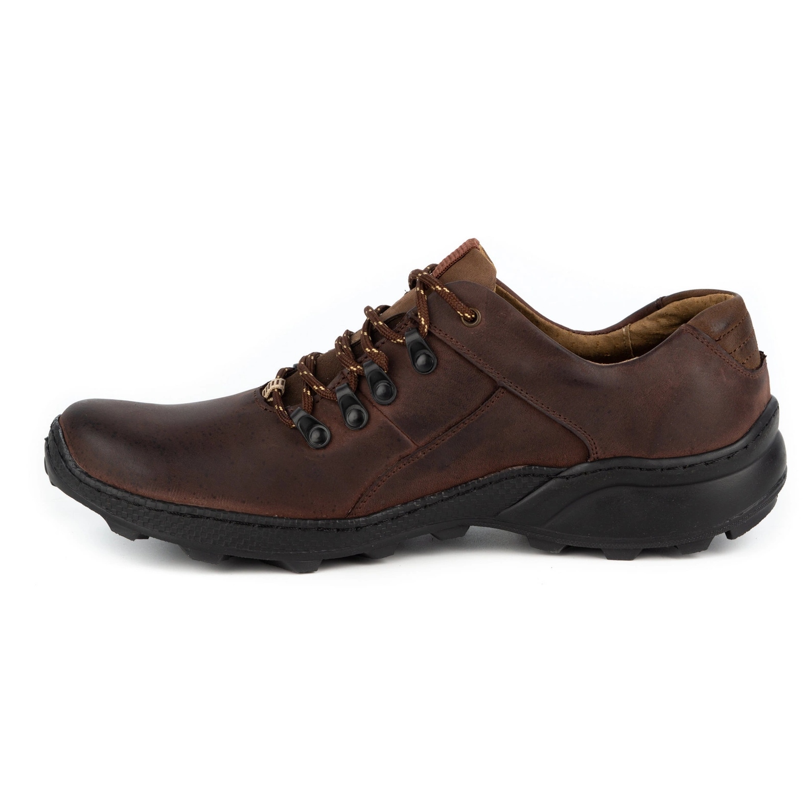 Les chaussures de trekking olivier modernes 296GT sont une combinaison de cuir naturel durable avec le confort de l'usage quotidien. Couleur brune classique et minimaliste, le design Adaid fait que le modèle fonctionne très bien pendant les stylisations urbaines errantes et décontractées.