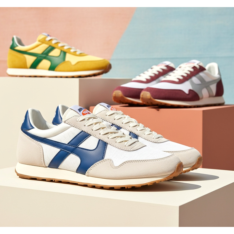 Les chaussures de course rétro sont des chaussures inspirées des chaussures de course de sport classiques des années 1970 et 1980. Leurs principales caractéristiques sont : une silhouette élancée avec une semelle basse et fine, des lignes épurées sans décorations excessives, des inserts en nylon ou poussiéreux de couleurs contrastées, ainsi qu'un héritage sportif clair exprimé dans des détails tels que des rayures, des logos ou des passants de lacets spécifiques.
