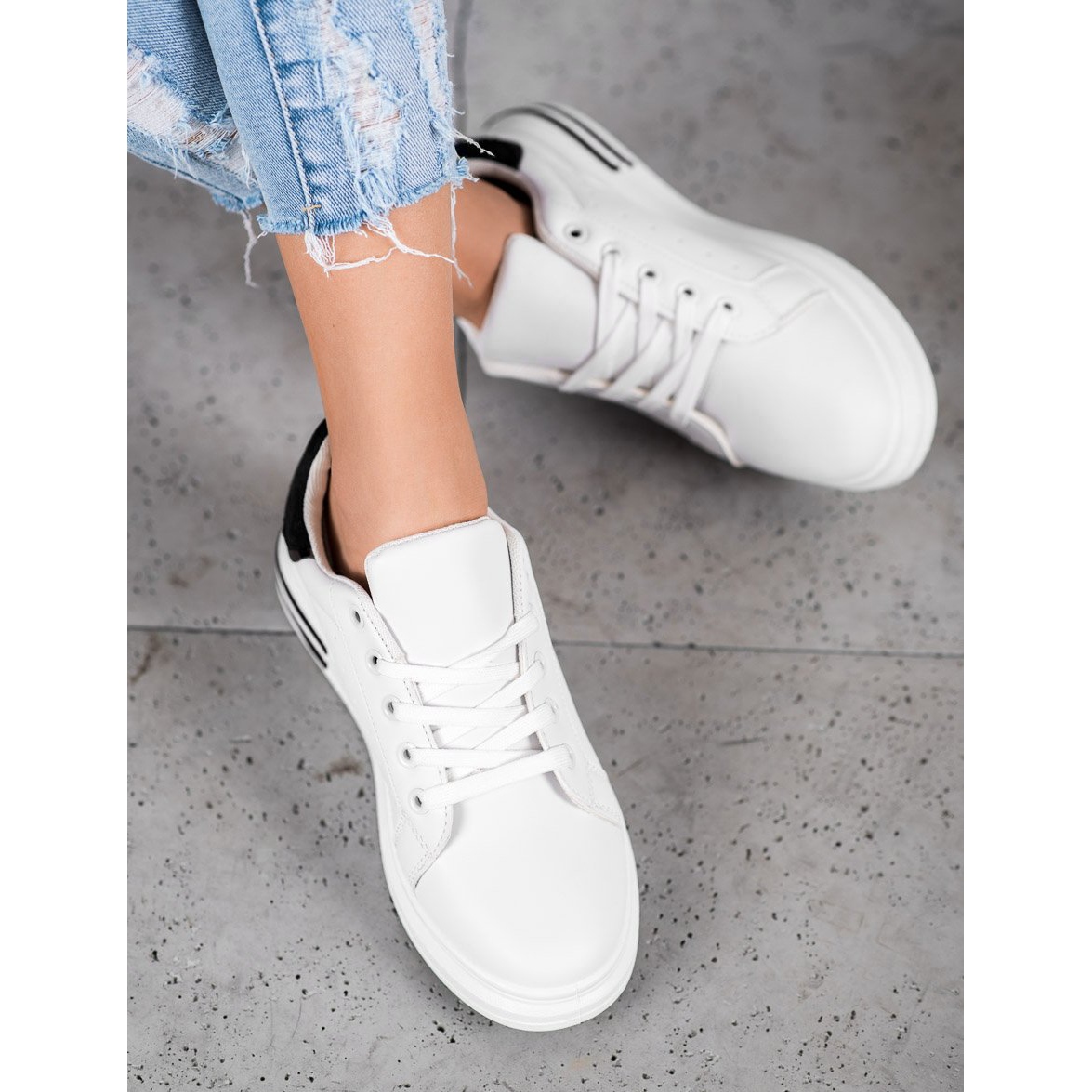 C'est le choix parfait pour les femmes qui souhaitent allier confort et style moderne ! Les chaussures de sport à la mode Diamantique dans une élégante couleur blanche sont un incontournable pour tout passionné de mode. Leur design minimaliste avec des inserts noirs leur confère un caractère unique et expressif, ce qui en fait un complément parfait aux styles décontractés et sportifs.