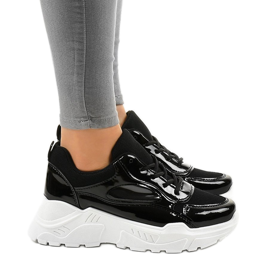Les chaussures de sport noires à la mode MS381E sont le choix parfait pour les femmes qui souhaitent allier confort et style unique. Ces chaussures à lacets, montées sur une semelle haute blanche de 6 cm de hauteur, attireront certainement les regards. Fabriqués dans un matériau semblable au cuir de haute qualité, ils se caractérisent par une finition laquée élégante qui leur donne un look moderne.