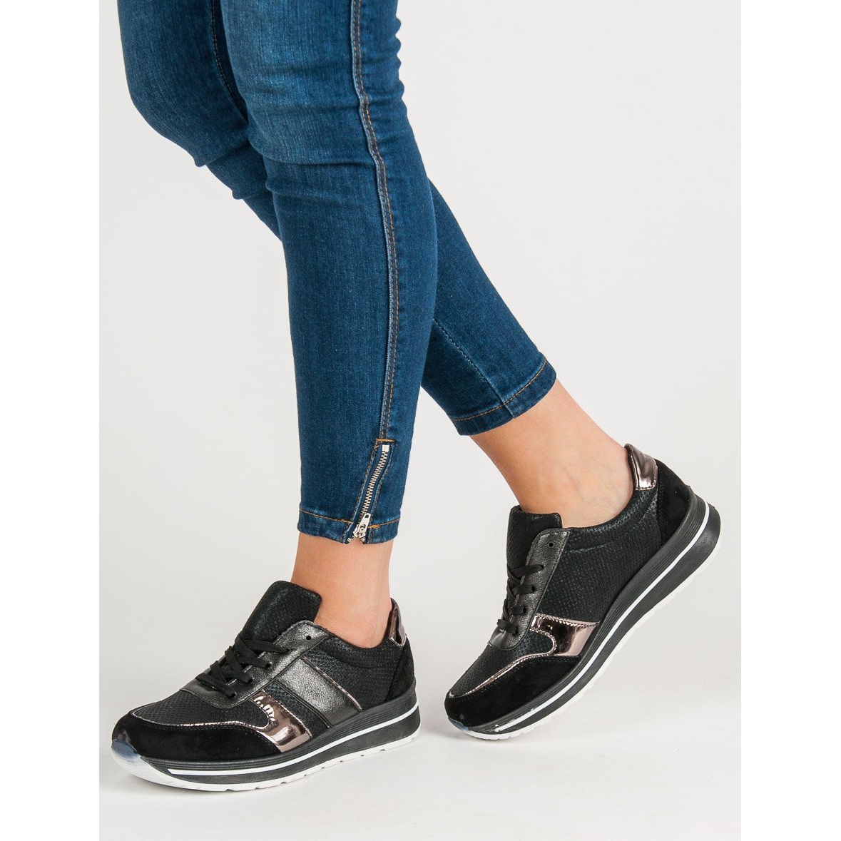 Nous vous présentons les chaussures de sport SHELOVET qui attireront certainement votre attention ! Ces baskets noires seront un complément parfait aux styles sportifs et décontractés. Grâce à des accents dorés subtils et brillants, ils gagnent en élégance et en classe, et leur design tendance s'adapte parfaitement aux tendances actuelles.