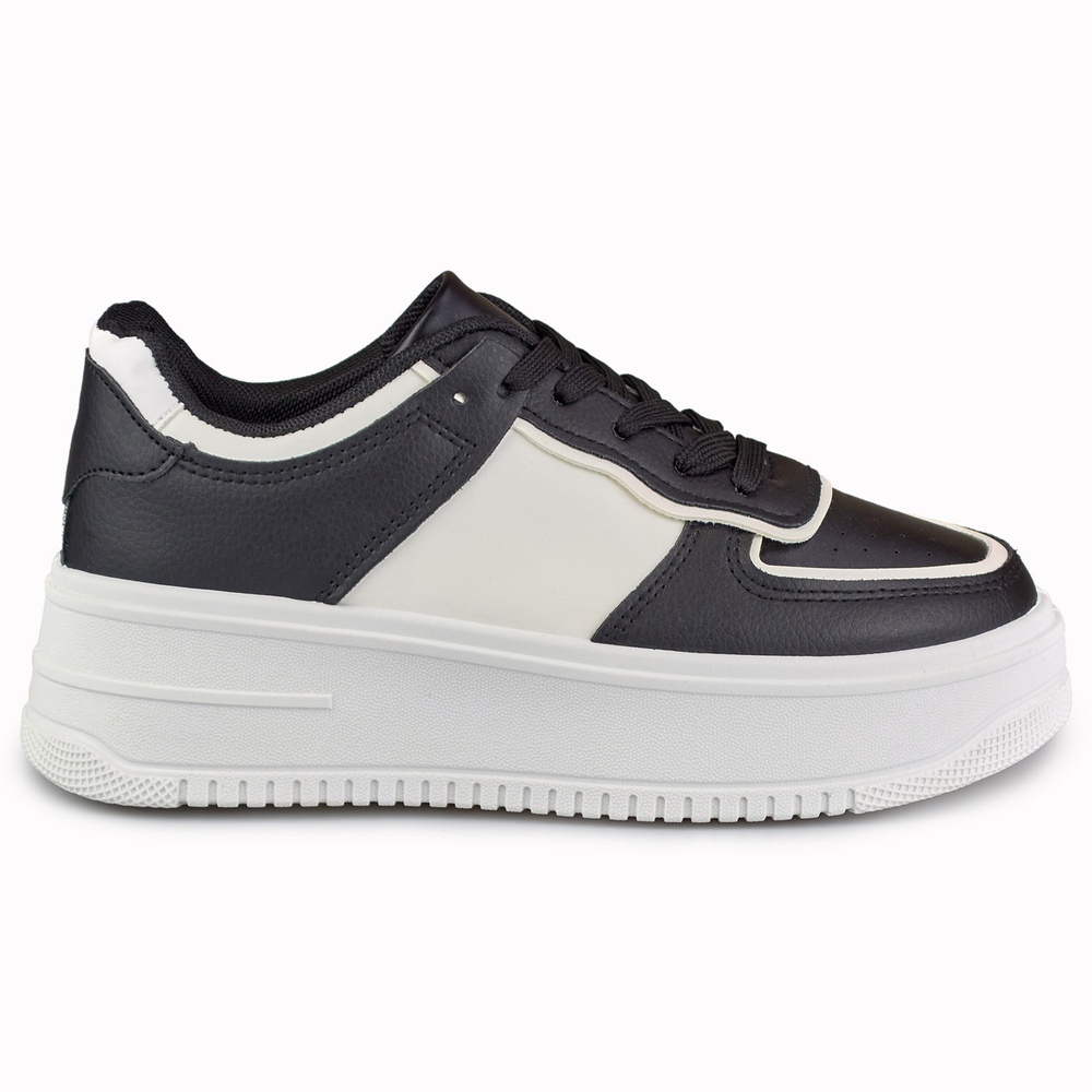 Détails: Chaussures de sport à plateforme noires et blanches le noir