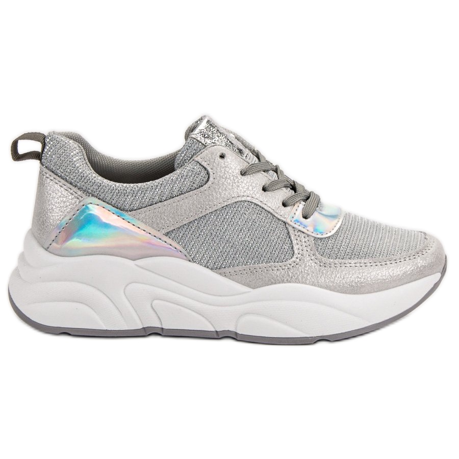 Les chaussures de sport Silver Ideal Shoes dans une nuance de gris sont un choix parfait pour les femmes modernes qui apprécient à la fois le style et le confort. Leur design unique s'intègre parfaitement dans les tendances actuelles et les accents brillants leur donnent du caractère, rendant tout style décontracté ou sportif à la mode et accrocheur.