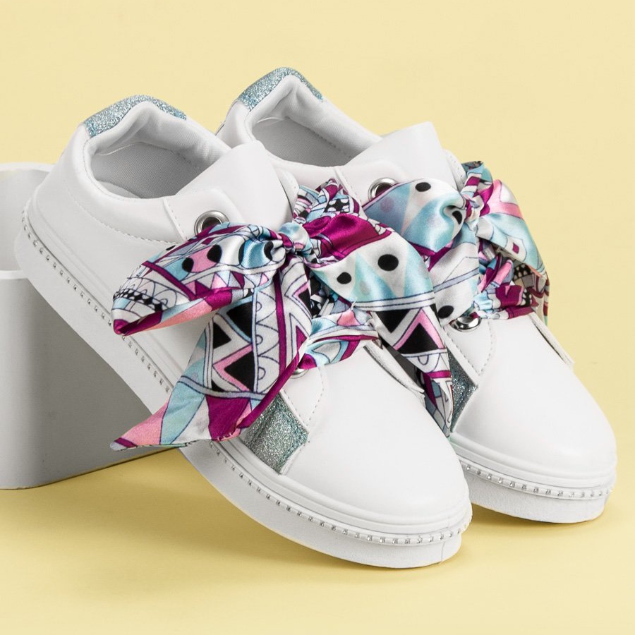 **Chaussures de sport à nœuds ruban, blanches - Découvrez le confort et le style !**