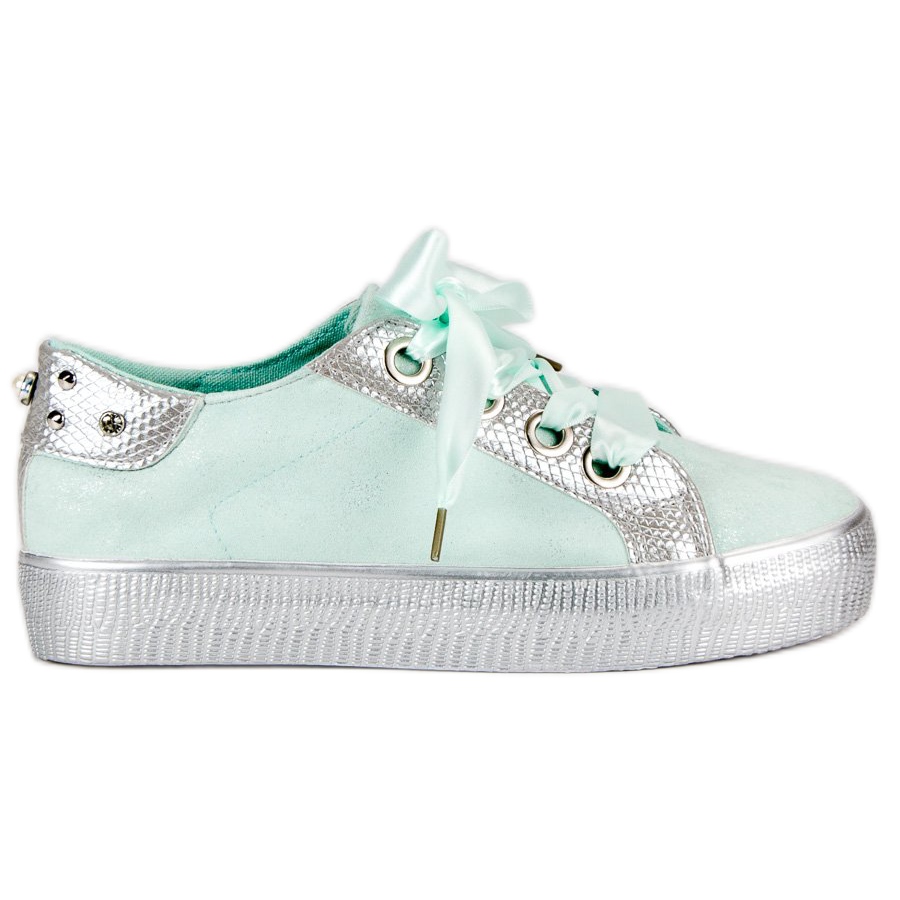 Nous vous présentons les chaussures de sport à lacets dans une couleur verte tendance du célèbre fabricant Bestelle. Ces baskets élégantes pour femmes sont un excellent choix pour les femmes qui apprécient le confort et le design unique. Fabriquées en matière textile de haute qualité avec d'élégants empiècements en éco-cuir argenté, ces chaussures allient look moderne et fonctionnalité.