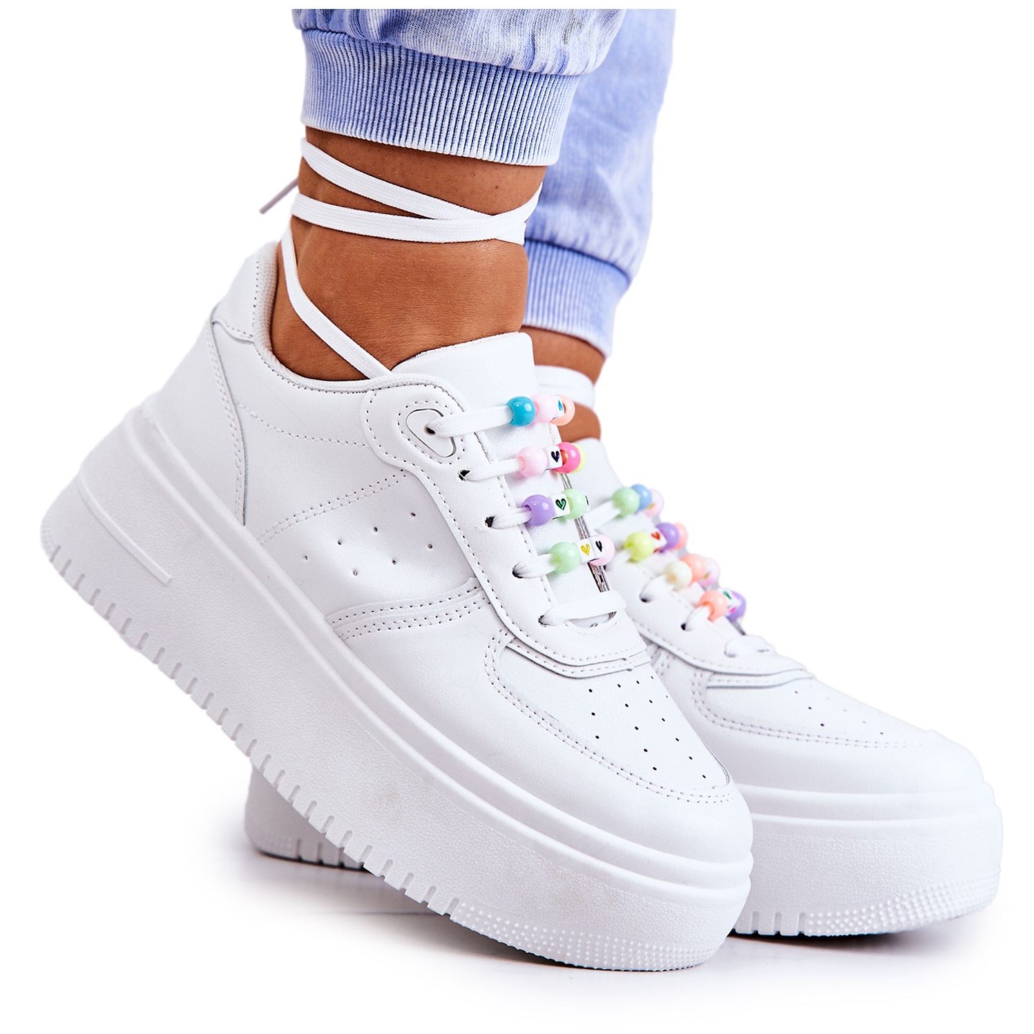 Détails: PS1 Chaussures De Sport Attachées Pour Femmes Baskets Blanches Manille