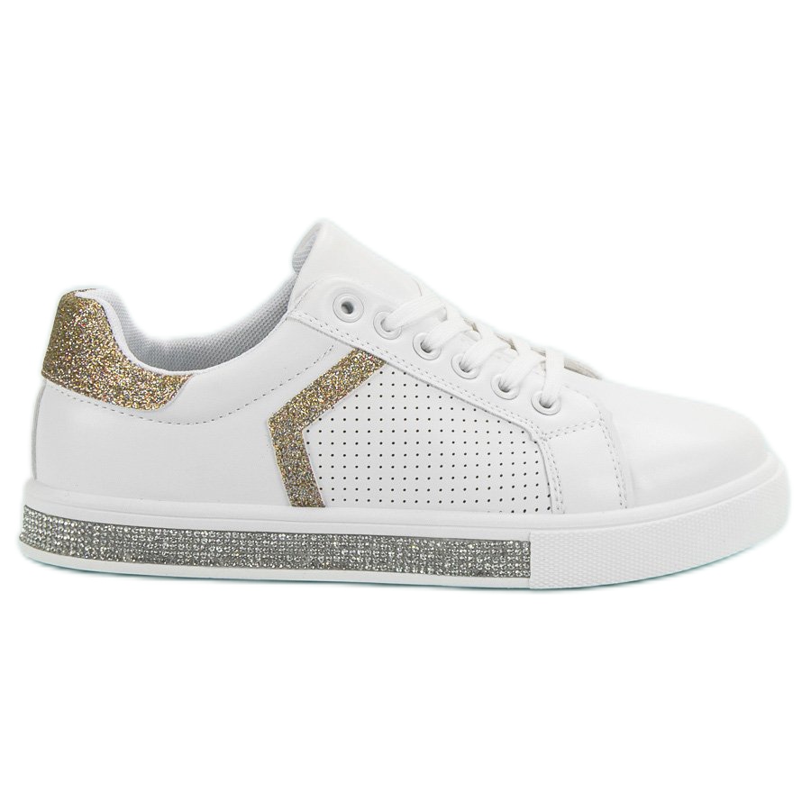 Êtes-vous à la recherche des chaussures parfaites au quotidien qui allient confort et look tendance ? Nous vous présentons les baskets blanches d'Ideal Shoes, qui attireront certainement l'attention par leur esthétique unique. Ces chaussures de sport élégantes se distinguent par des paillettes dorées et des strass, qui ajoutent un peu de brillance et de chic au style classique et décontracté.