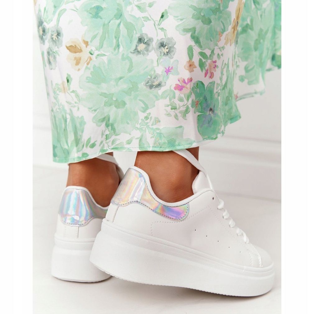 Détails: Chaussures de sport baskets sur la plate-forme blanc et argent brillant brillant
