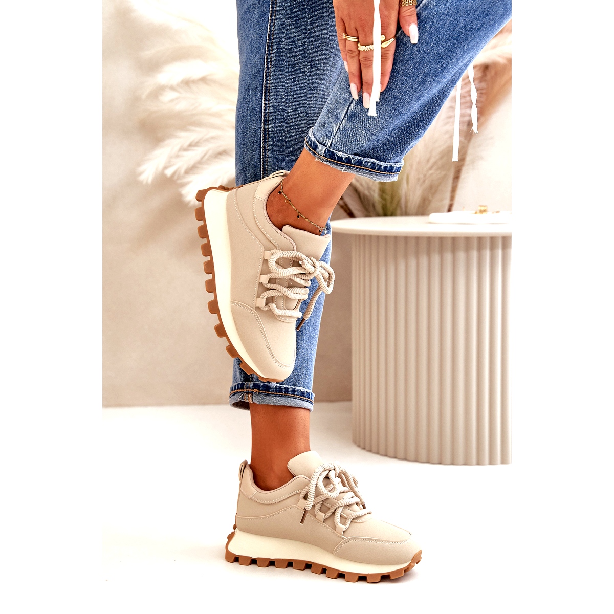 Investissez dans la commodité et le style - choisissez des baskets beige sur une plate-forme en cuir écologique qui ajoutera du dynamisme et des sourcils sportifs de chacune de votre stylisation!
