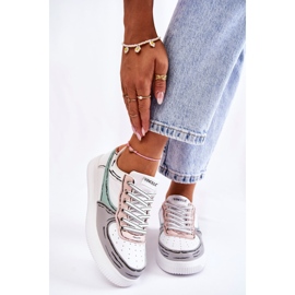 Des baskets élégantes et confortables, ce qui sera un complément parfait à de nombreuses stylisations de tous les jours. La tige en cuir écologique a été décorée d'une perforation subtile à l'avant, et la finition multi-colorants donne au modèle un personnage frais et à la mode. Situé sur une plate-forme massive, ils assurent la stabilité et augmentent légèrement la figure, en maintenant le confort de la marche.