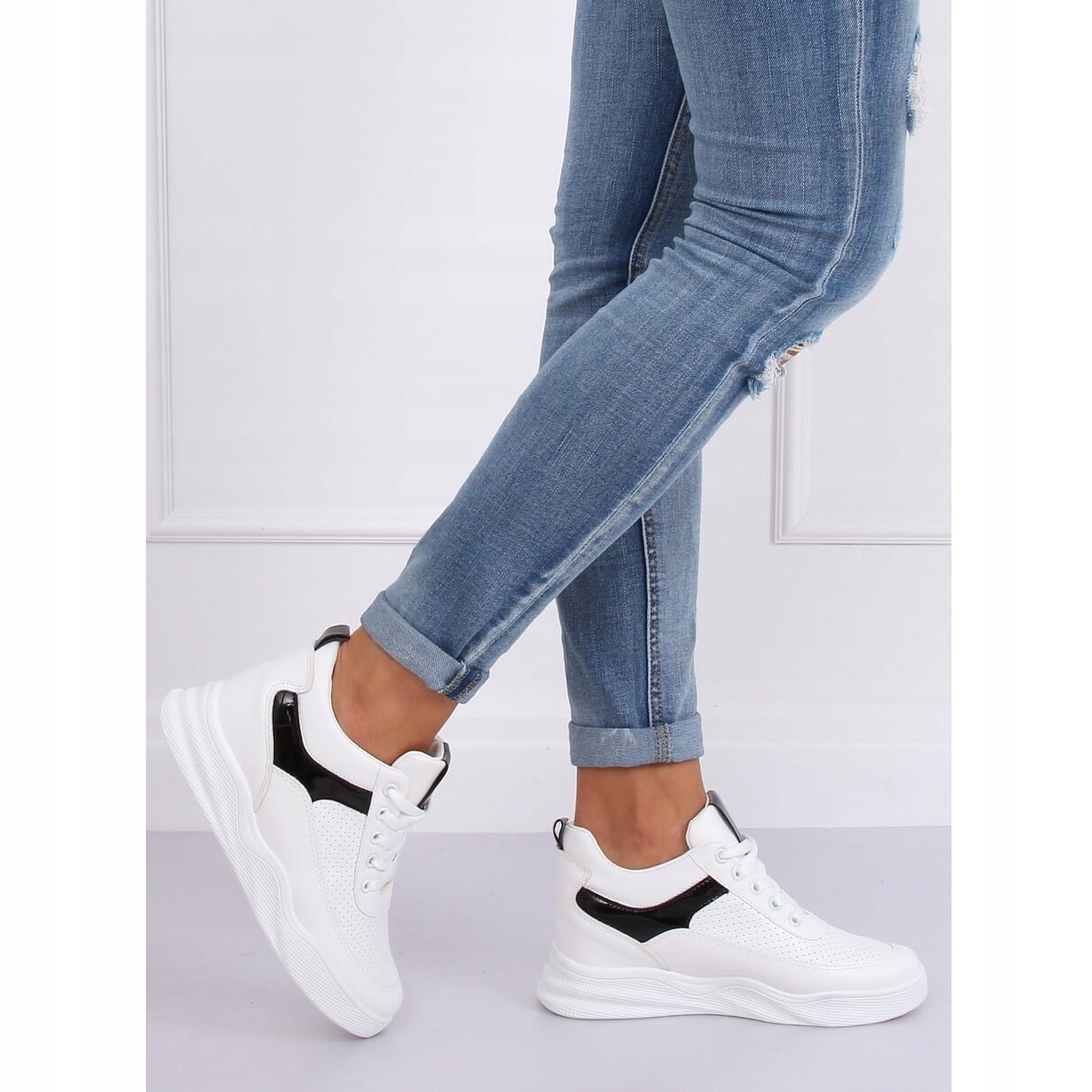 Les chaussures de sport compensées blanches 85-429 WHITE/BLACK sont un choix parfait pour toutes les femmes qui apprécient la combinaison du confort et du design à la mode. Avec une cale de 7 cm de hauteur, ces chaussures ajoutent non seulement quelques centimètres de hauteur, mais aussi de la stabilité lors de la marche.