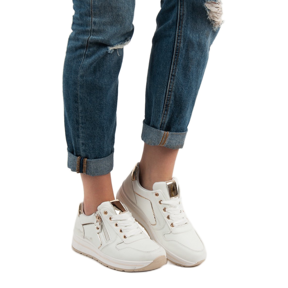 Découvrez un style et un confort uniques avec les chaussures de sport blanches de SHELOVET ! Ces chaussures extrêmement originales attireront certainement l'attention de toutes les femmes qui recherchent des accents de mode dans leur garde-robe. Ils se caractérisent par une jolie fermeture éclair et d'élégants inserts dorés, qui leur confèrent un charme unique et en font l'un des hits de cette saison.