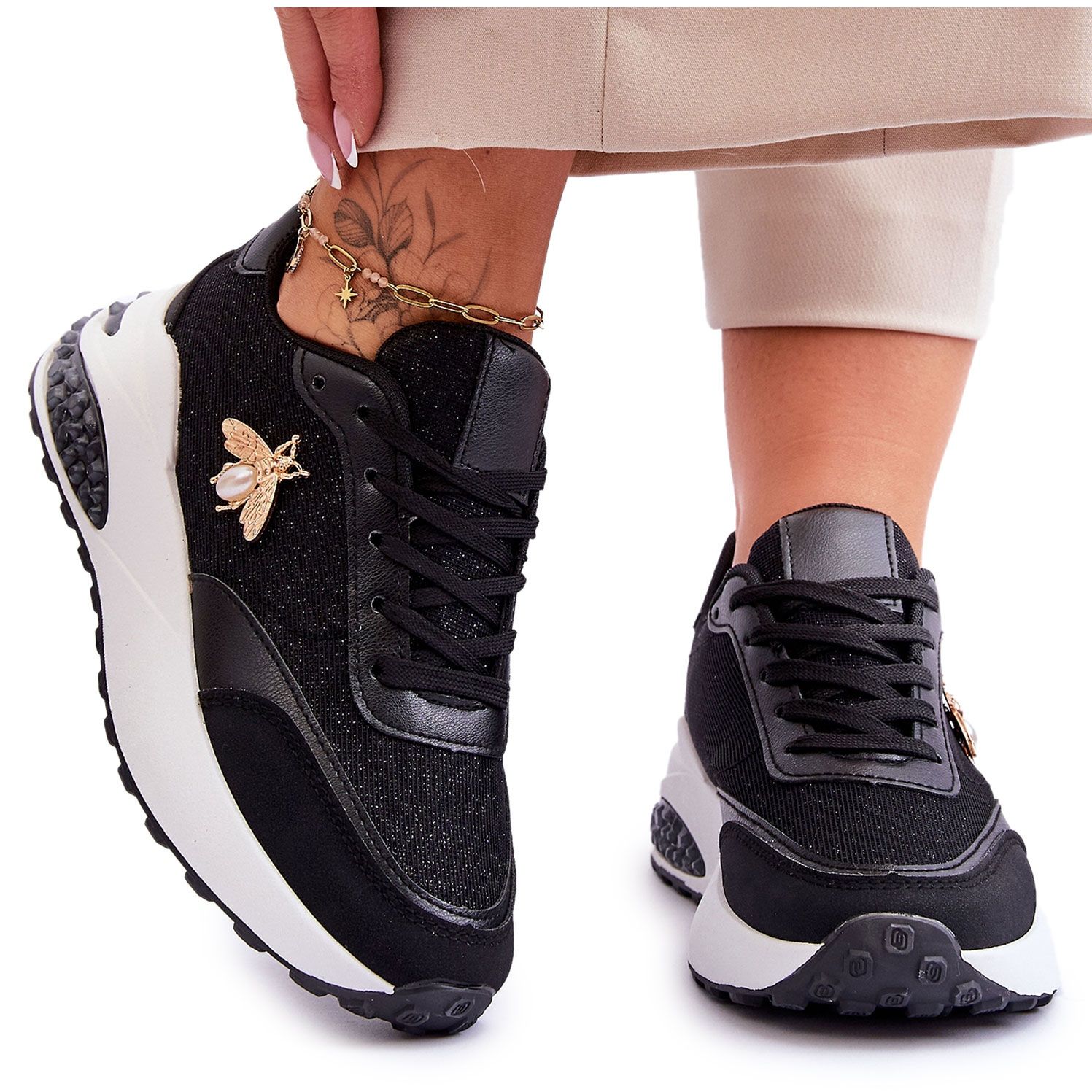Installés sur une plateforme confortable et une cale basse, ils offrent stabilité et confort lors des activités quotidiennes. Un accent intéressant est la décoration en forme d'insecte située sur le côté de la tige, qui donne aux chaussures un caractère unique. Le laçage classique permet un ajustement parfait à la forme de la jambe, ce qui plaira certainement à toutes les femmes.