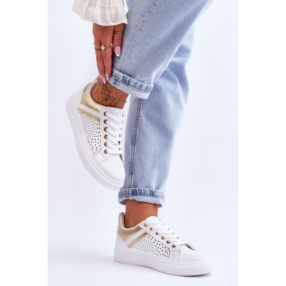 Inna marka Chaussures De Sport Classiques Avec Motif Ajouré Blanc Et Or Happier blanche