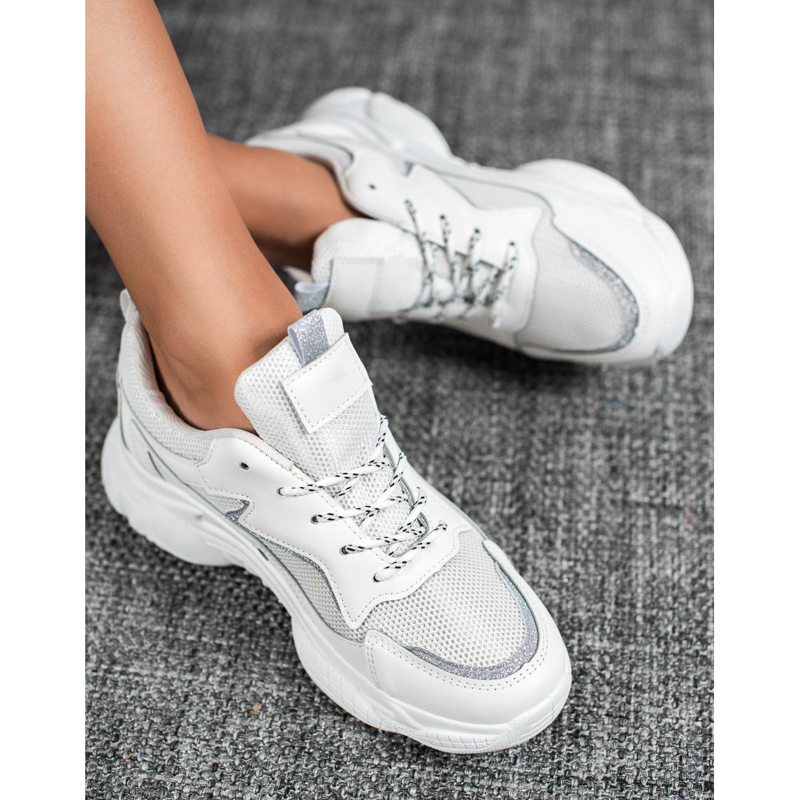 Êtes-vous à la recherche des chaussures parfaites qui allient confort et style moderne ? Ce sont des chaussures de sport blanches classiques de la marque SHELOVET qui répondront à vos attentes ! Ces chaussures pour femmes, grâce à leur forme minimaliste, s'intégreront parfaitement dans différents styles, aussi bien pour un usage quotidien que pour des occasions plus décontractées.