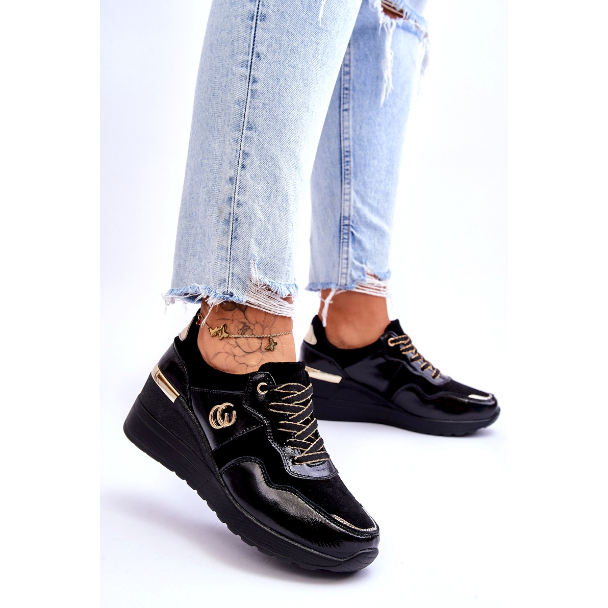 Nous vous présentons les chaussures de sport compensées en cuir pour femmes de la célèbre marque S.Barski - le modèle Rebeca dans une élégante couleur noire. Ces baskets uniques sont le choix parfait pour les femmes qui apprécient le confort et le style.