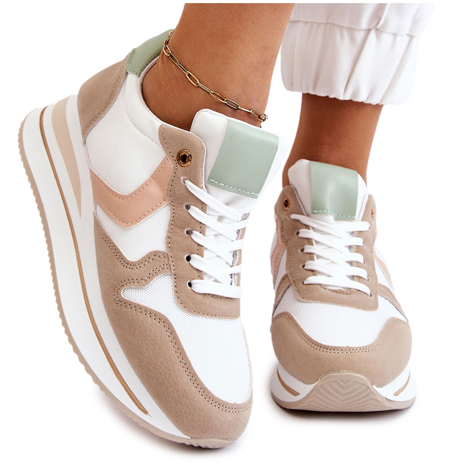 Détails: PG1 Chaussures De Sport Compensées Femme Blanc Et Beige Neva
