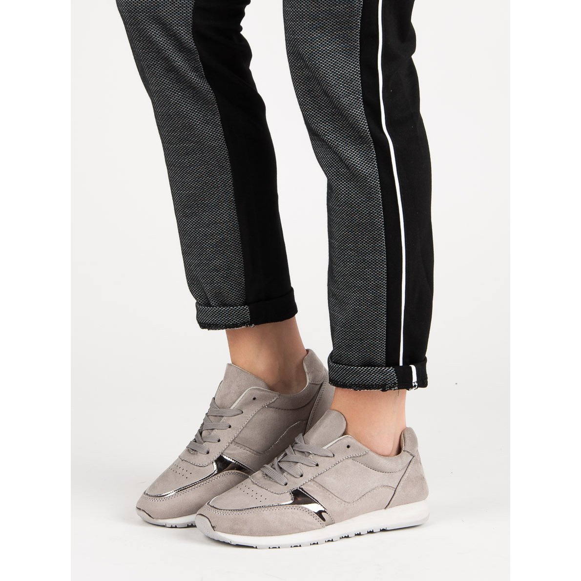 Découvrez le confort et le style avec les chaussures de sport Jumex dans une élégante teinte grise. Ces chaussures pour femmes uniques, fabriquées en daim écologique, allient parfaitement sportivité et classe, ce qui en fait un choix idéal aussi bien pour les sorties quotidiennes que pour les occasions plus formelles. L'application brillante leur confère un charme unique, vous permettant de vous sentir spécial et de vous démarquer de la foule.