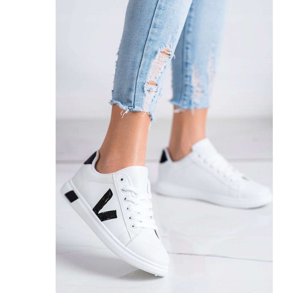 Ce sont des chaussures de sport Shelovet qui s'intègrent parfaitement dans la mode printanière ! Ces baskets blanches en cuir écologique sont la combinaison parfaite entre style et confort. L'accent noir et brillant leur confère un caractère moderne et en fait une base idéale pour de nombreux styles décontractés.